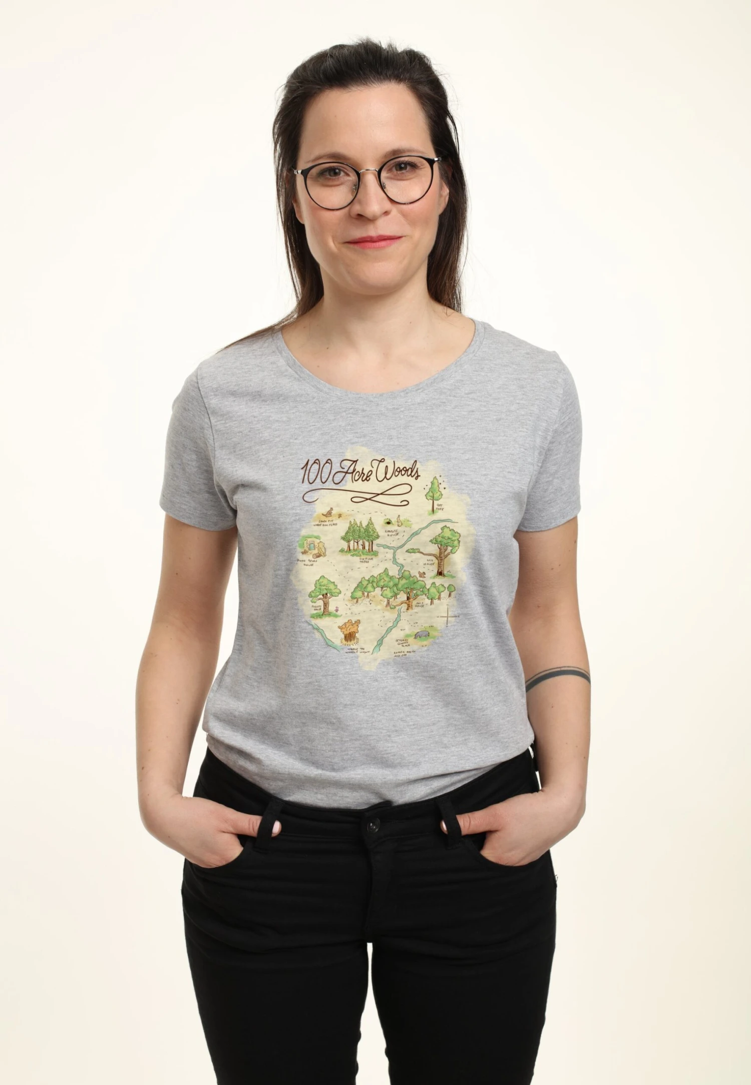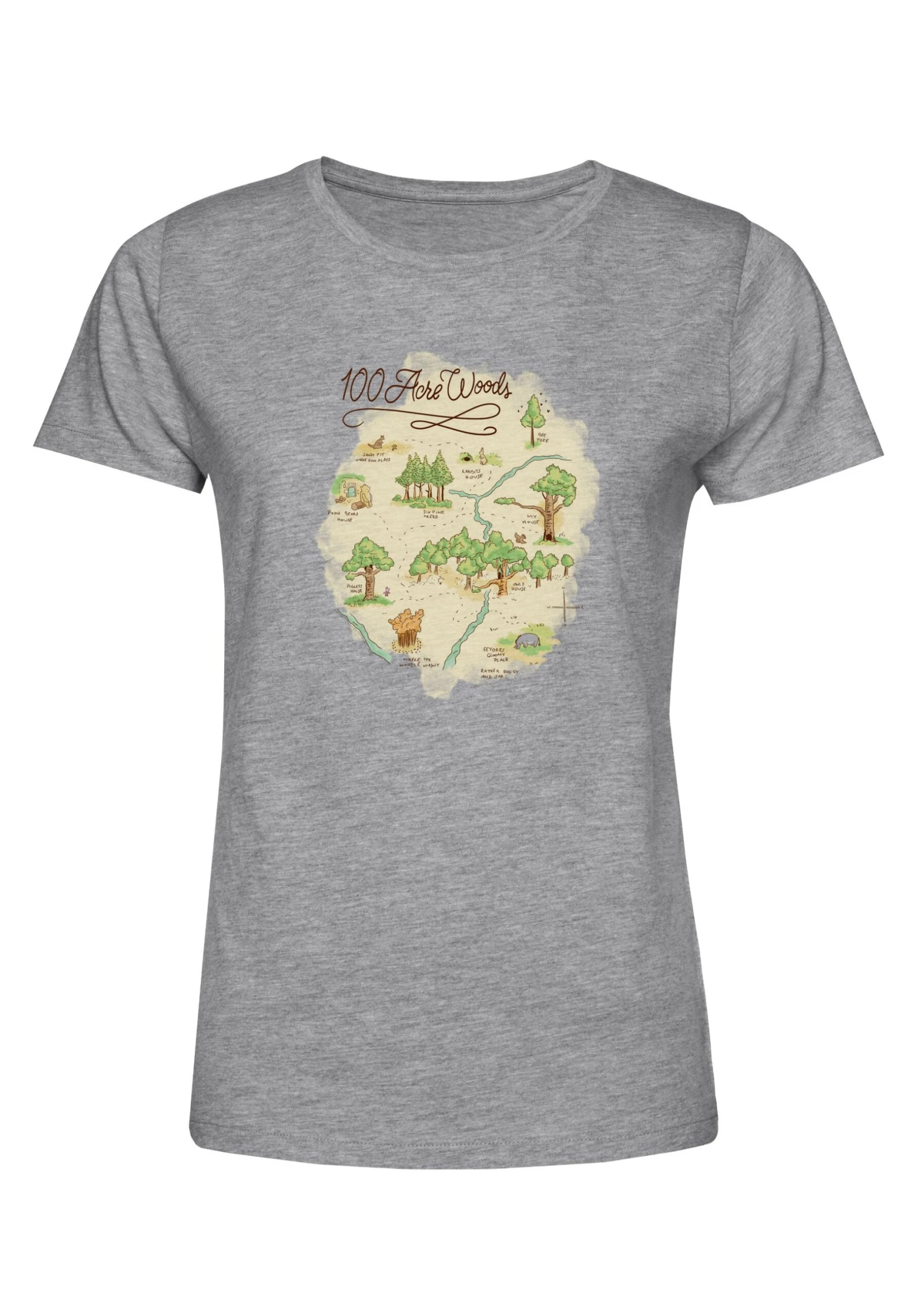 Disney Winnie The Pooh Acre MapT-Shirt Con StampaHeather Grey Donna T-shirt E Top H3A21D39C-C11